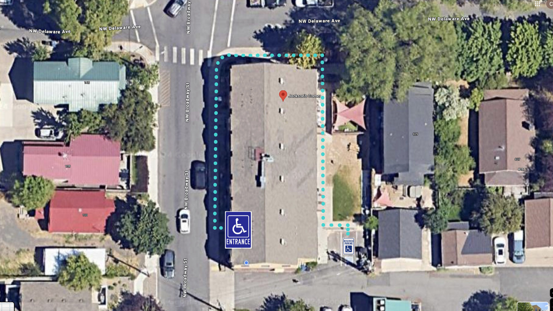 We offer a designated off-street parking spot for ADA accessibility. To park, turn into the alley located on the south end of our building, situated between Delaware and Colorado. The ADA parking spot is located to the east of our building.